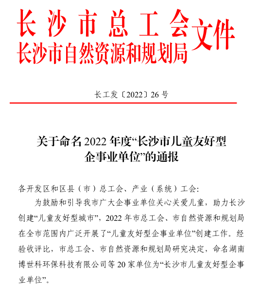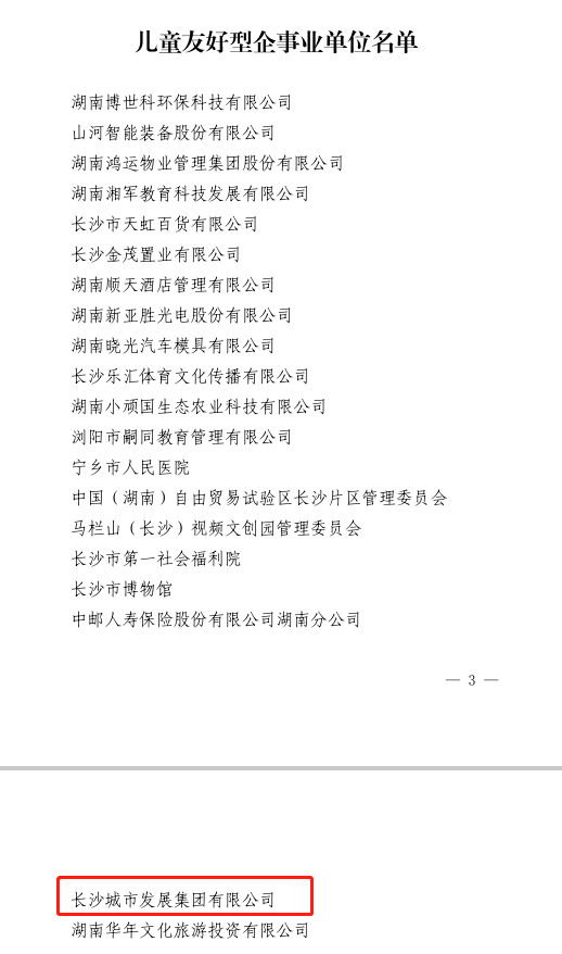 喜报!长沙城发集团荣获2022 年度“长沙市儿童友好型企事业单位”称号