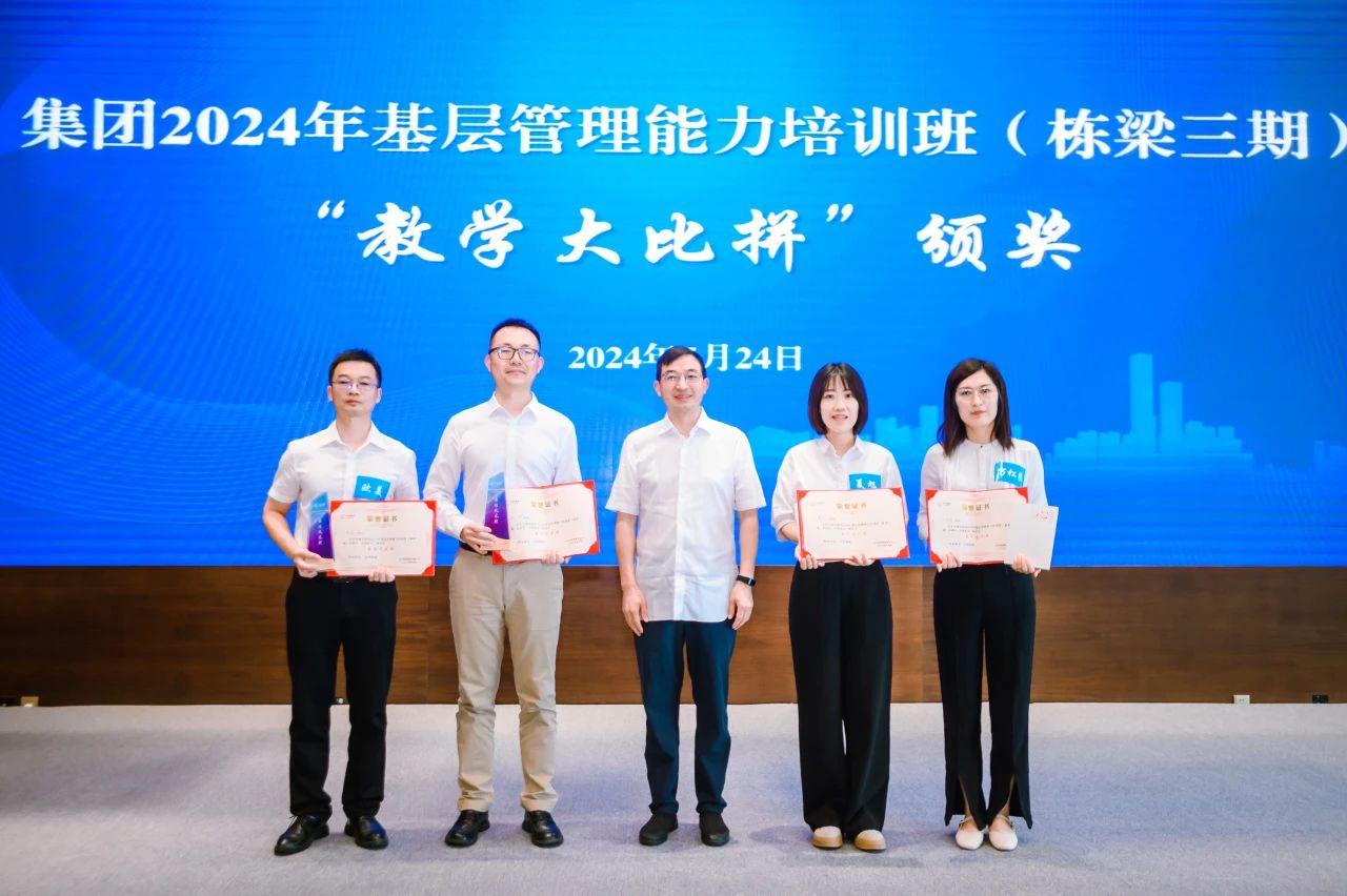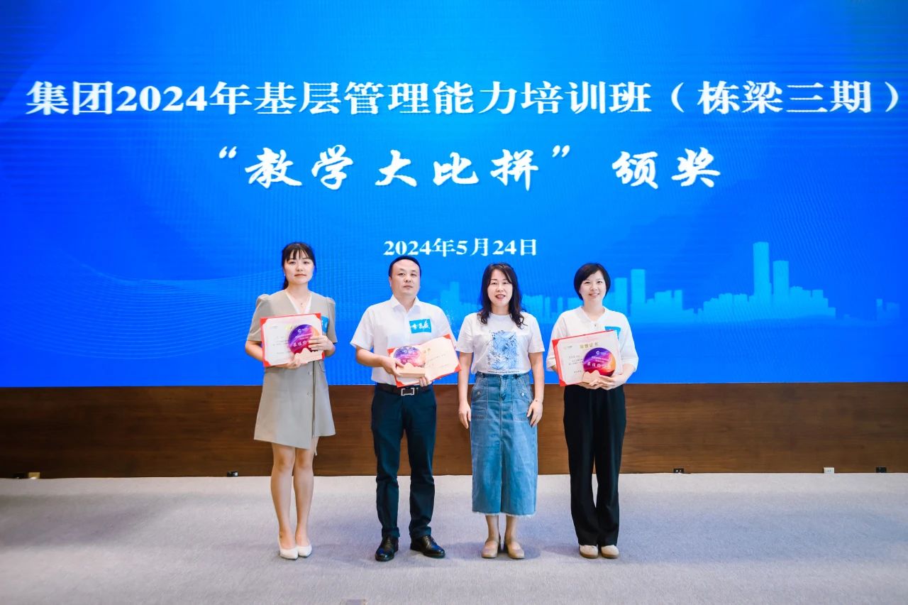 随后,本次培训班举行了“教学大比拼”成果汇报暨结业仪式,培训班内部导师出席。经前期初赛、复赛,共有5名学员代表进行最终汇报,他们围绕自我管理、业务管理、团队管理等方面进行了精彩的微课展示。导师们进行现场指导及点评,为培训班优秀学习团队、学习积极分子及“教学大比拼”获奖人员颁奖。
