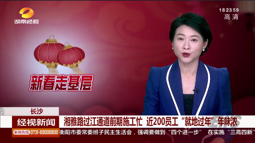 湖南经视新闻:长沙:湘雅路过江通道前期施工忙 近200员工“就地过年”年味浓
