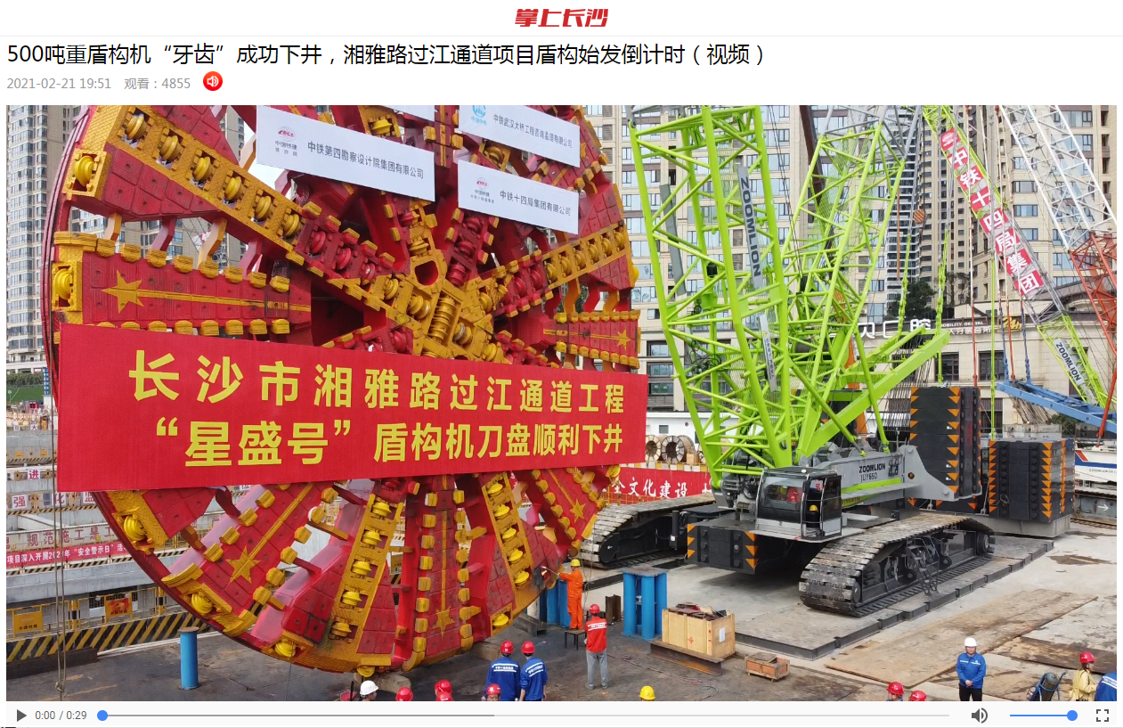 潇湘晨报:湖南省最大直径盾构隧道!湘雅路“星盛号”盾构机刀盘成功吊装,预计3月份组装调试完成